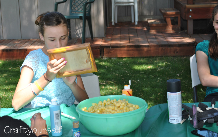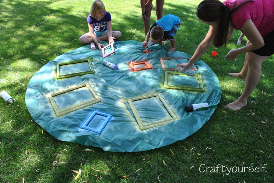 While the chalkboard spray paint dried we worked on painting our frames – this part was a little more difficult as the spray paint took forever to dry without being sticky due to the heat outside.