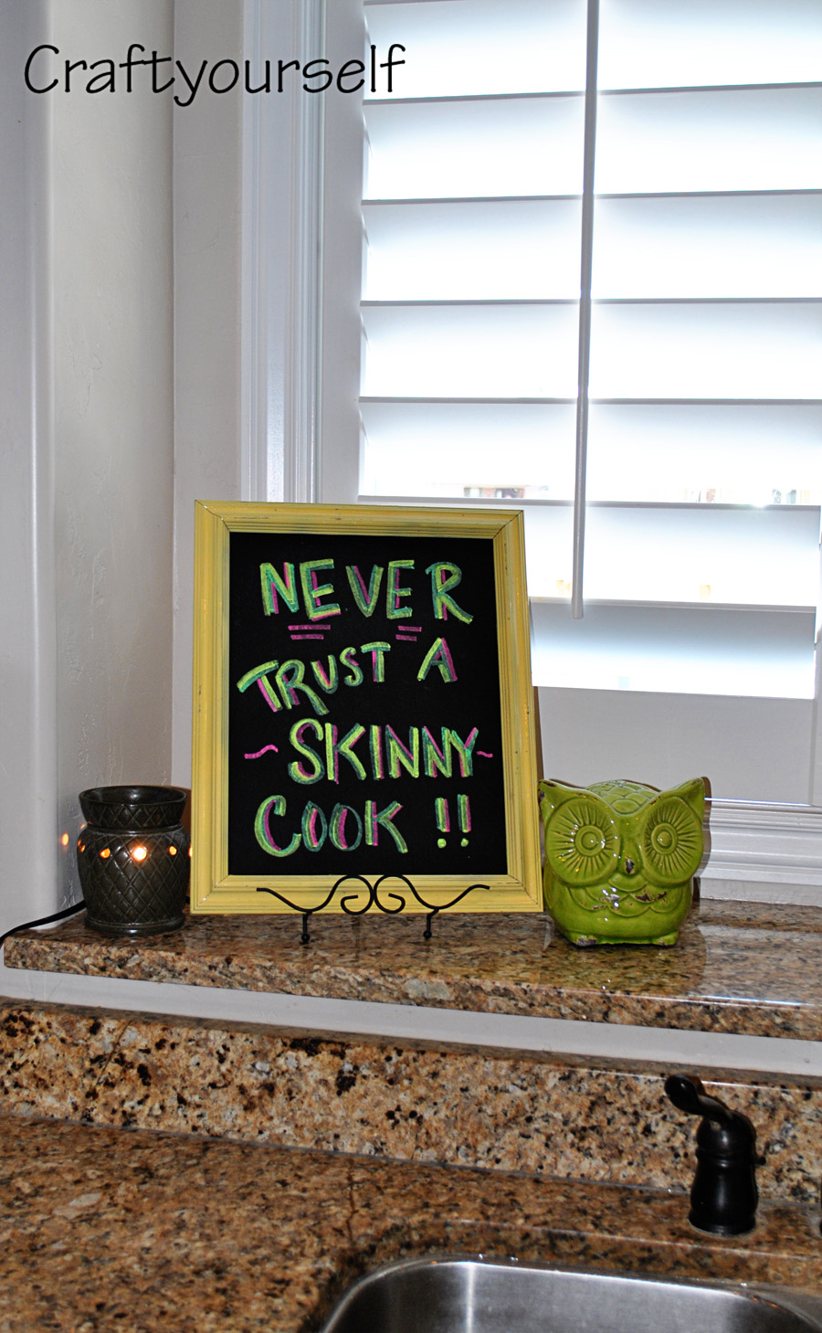 Here is what mine looks like all finished up! I bought some chalk markers that are less mess than normal chalk but they do require using a wet rag to remove the words.