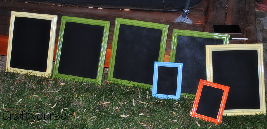 We removed the center of the frame and spray painted them with chalkboard spray paint