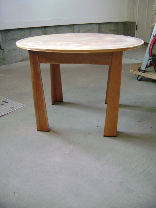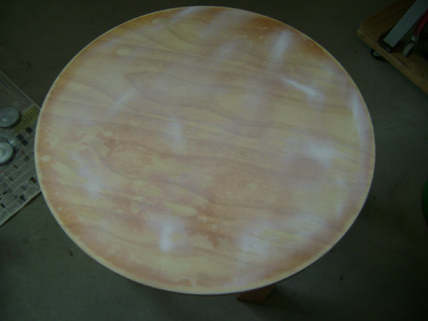 See how the top of the table is not sanded all the way just scuffed up pretty good? I also touched up any marks with putty. Make sure once you are done sanding that all the dust is removed before painting.. I will have my husband blow off any additional dust with an air compressor. Sometimes I will take a cloth and wipe it down.