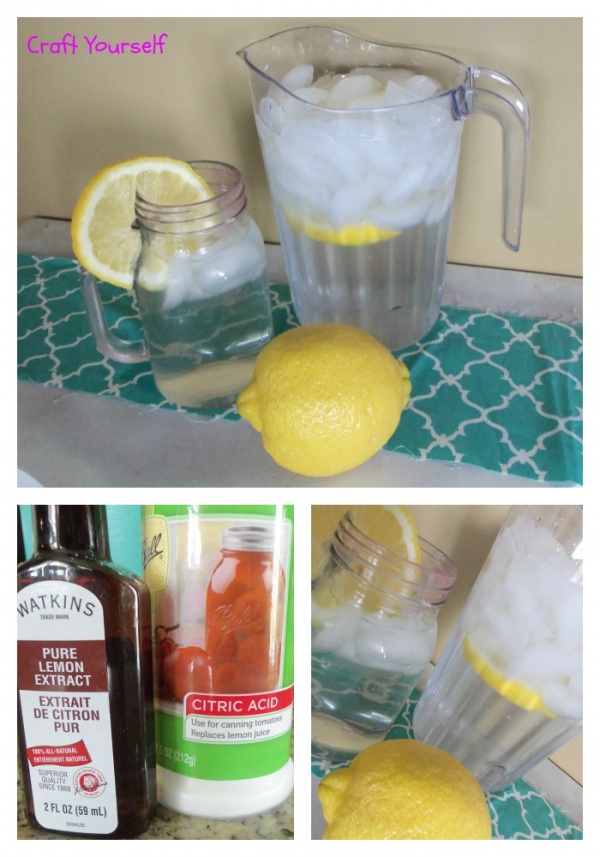 The best part about the recipe is how simple it is to make. Simply add Water, sugar, lemon extract and citric acid together then stir until dissolved. It only takes about 5 minutes from start finish! Make sure you don’t confuse lemon extract with lemon juice. I have pictured the 2 ingredients that really make this drink unique! They may not be a staple in your cupboard but I can guarantee this drink is worth purchasing them for.