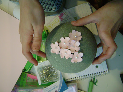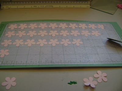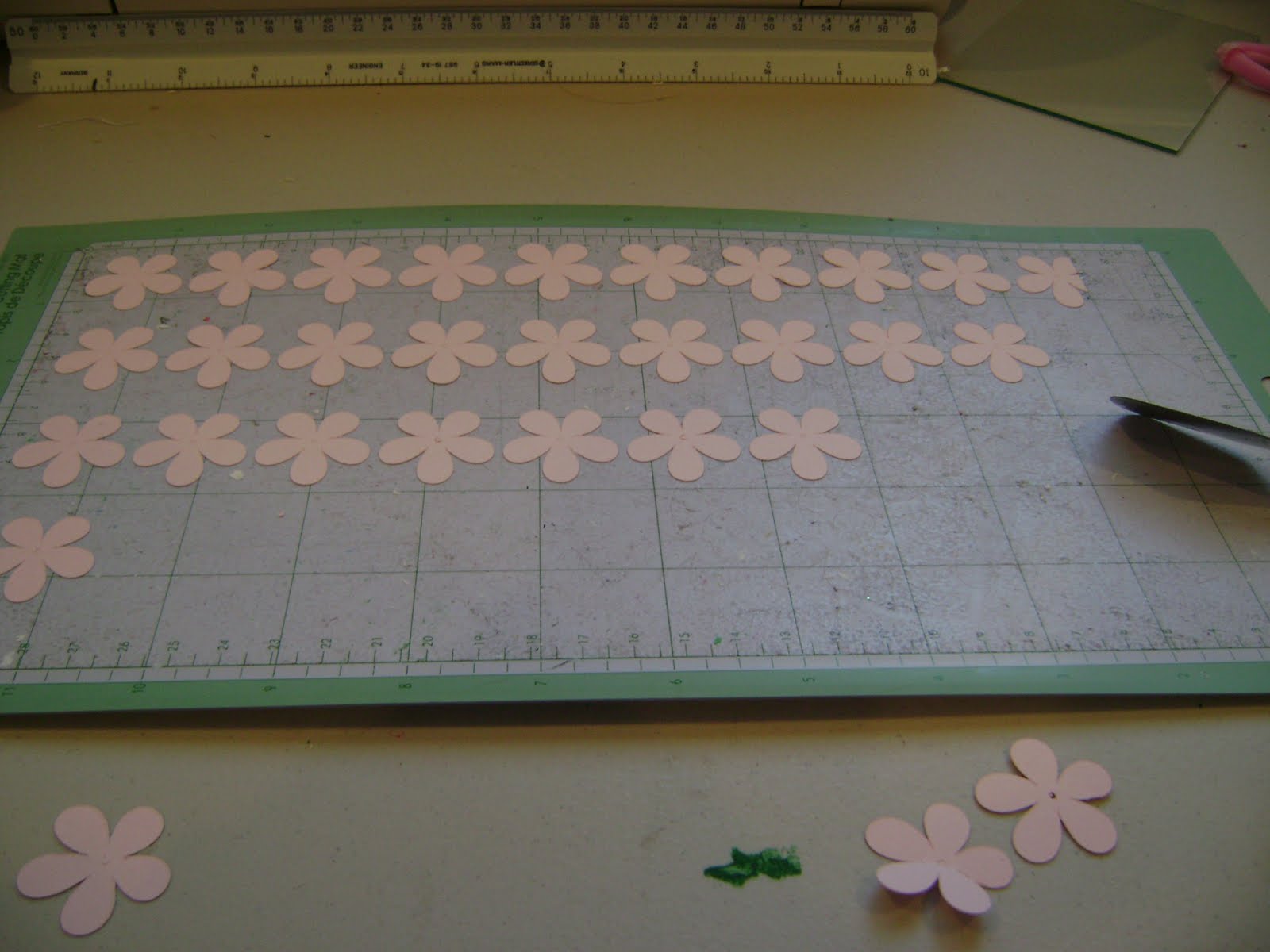 I love tutorials but I find myself always doing them just a bit different than the person who’s tutorial I am following. In Courtney’s tutorial she used her paper punch and I thought that would be exhausting cutting out each individual flower so instead I used a piece of card stock and my cricut.