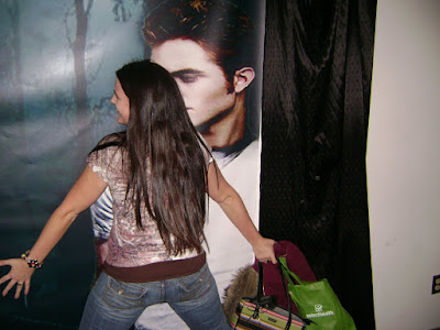 While in line I got a little action with Edward.. or er umm.. a poster of Edward – yep folks I was acting like a giddy high school girl.. I was laughing so hard at some of these shots that Tiffany and I got!
