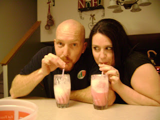 We tried a slushy type drink it had Raspberry sherbet, 7up, Whipped topping & berries. It was simple yet delicious!