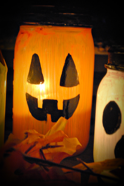 Here is what they look like without a tea light in them & not lit up. I have seen some versions where they have put raffia around the top & used christmas lights inside of the jars!