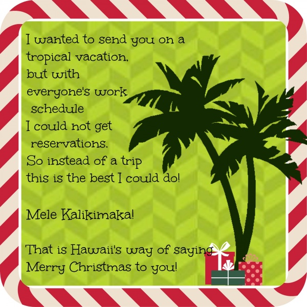 Here is the cute tropical Christmas tag (see link below to print your own)