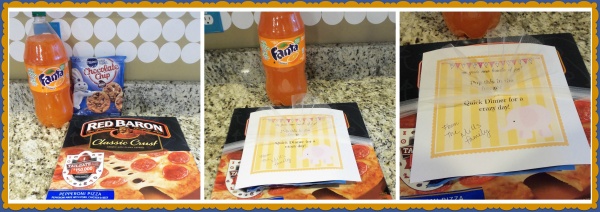 My neighbor just had a new baby and they are new to our neighborhood. I wanted to do something for them. I felt a gift may be awkward, seeing how we don’t know them very well. Food is always a great gift. I like the idea of a “freezer meal” to pull out on a crazy day. I found all the item’s on sale at my local grocer. This cost under $5. I made up the New baby printable to go along with it.