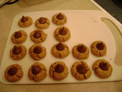 blend all together (except kisses) roll in 1 inch balls. Bake @ 350 for 10-12 minutes