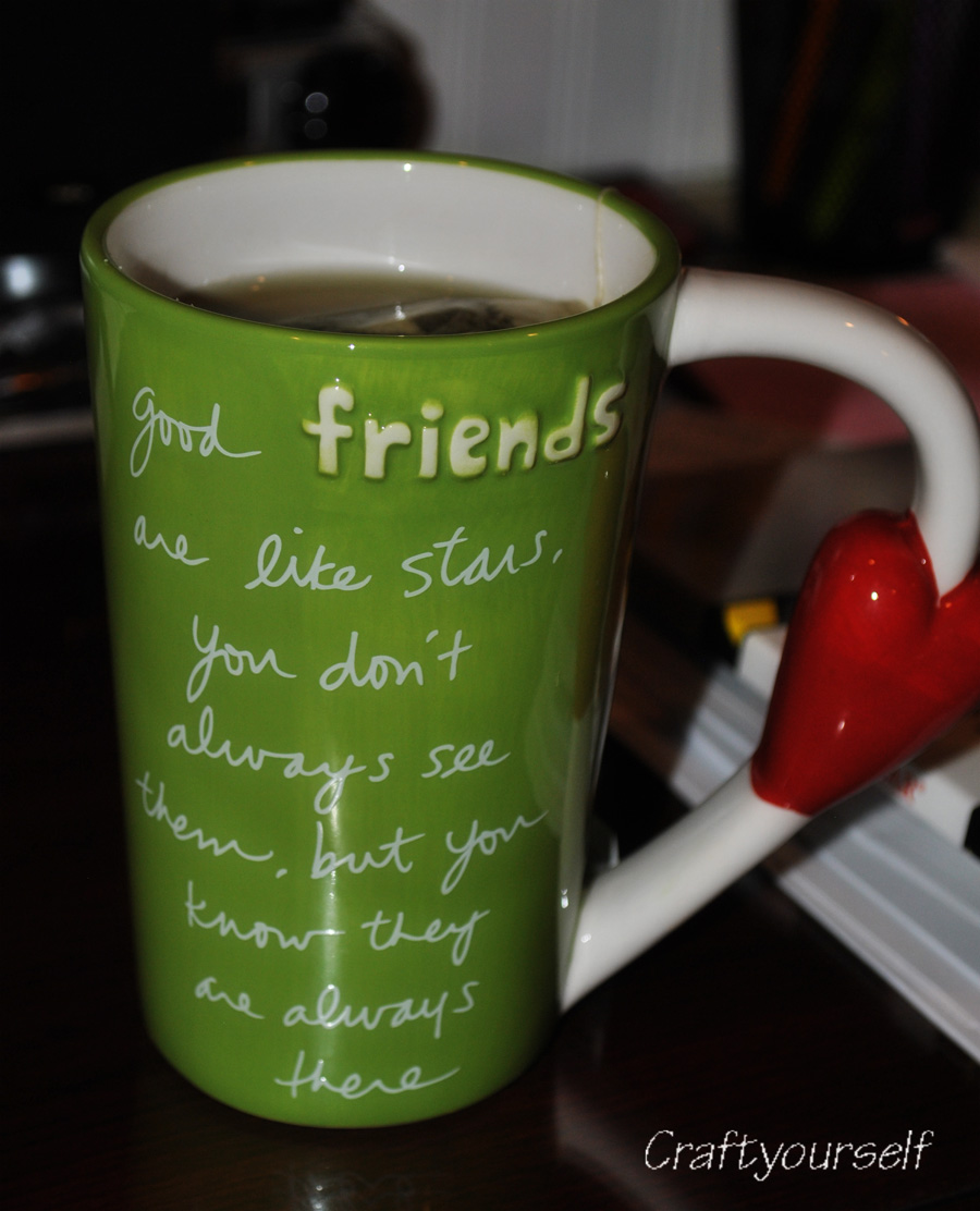 Three hours later, I have a new mug with my favorite tea, I have oodles of new pillows for my basement family room couch, I have a smile on my face and I recognize I am very lucky to have a friend who always knows how to make me smile.
