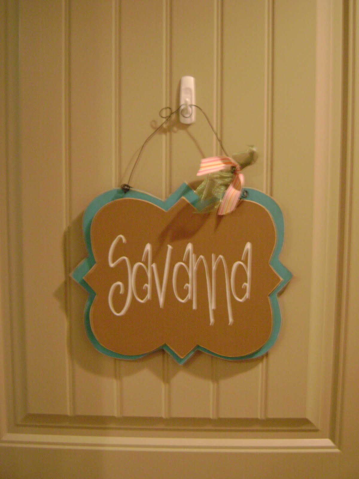 Last but not least I made identical plaques for each of my girl’s bedroom doors although each girl has their name on the front and the colors are painted the same as what their bedroom is painted.