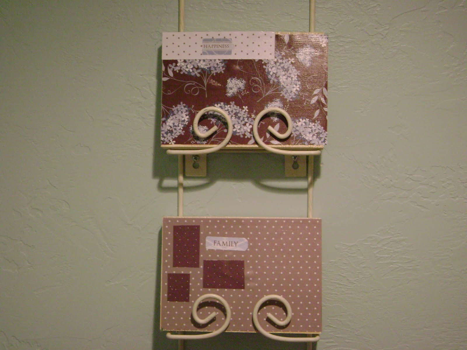 I have also been working on another craft project for Savanna’s room, my mother gave me an old plate holder she was getting rid of so I took some wood blocks and cut them out to about a 5×7 size and found some cute scrapbook paper to modpodge over the top of each block. It was a simple project but added some character to her room.