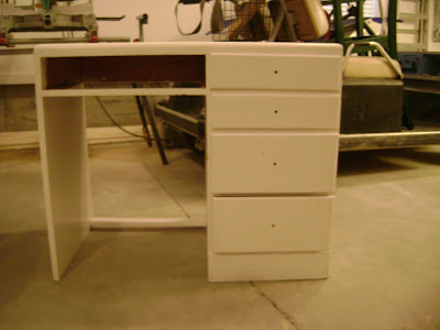 I had sanded it down and sprayed one coat of paint onto it when it was time to go have surgery on my jaw. That held me up for oh about 2 weeks. If any of you know my husband you know that a desk sitting out in his garage UNFINISHED would about send him over the edge. After two weeks of it sitting out there Justin took it upon himself to finish it. (oops) but I am grateful I have a husband who is such a go getter! THANKS BABE!!