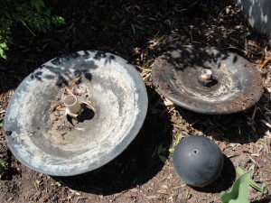 My mother had a beautiful outdoor fountain that the base slowly deteriorated over time. It was made of resin and broke down so it could no longer be used. The pump of the fountain was still good as was the bowl of the fountain. Not sure what to do with it the fountain sat in her flower bed looking like this for years.