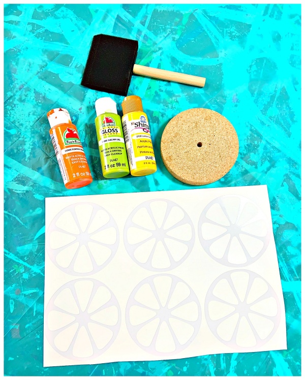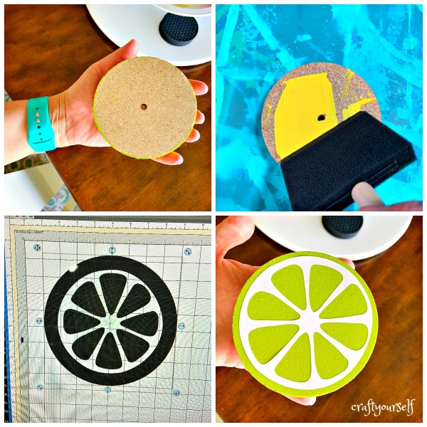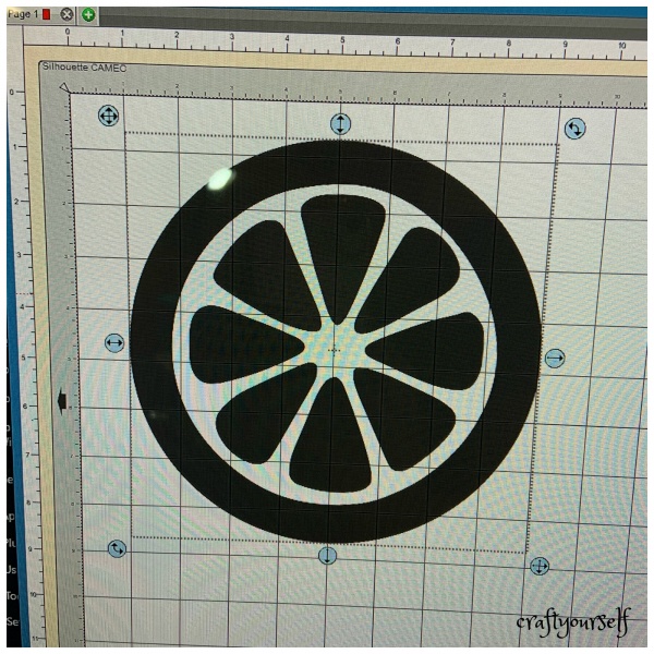 While your freshly painted wood is drying. purchase or create a citrus fruit design using your personal cutting machine. Size design according to the size of your circles and cut design onto white vinyl.