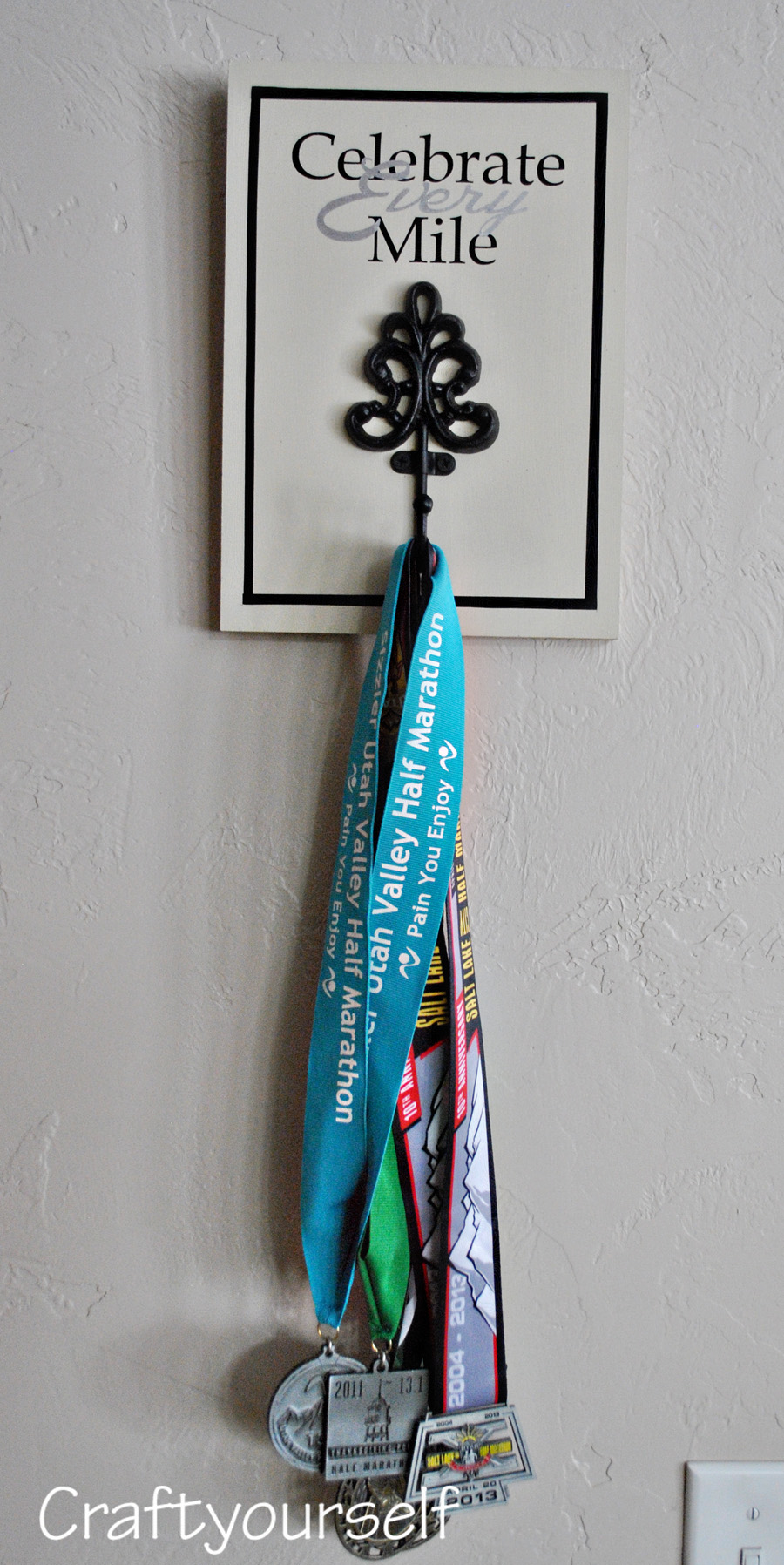 I admire this idea. I had used simple white, sticker type hook from 3m for my boys’ medals. Our elementary school has a running club and sometimes they finish top 15 (out of 100-150) earning a medal. This is so much nicer and impressive. Thanks for sharing.