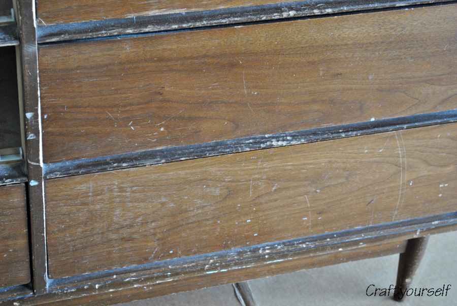 This dresser was a FREEBIE!! (love those deals) It’s structure was amazing, it’s drawers were all perfect, in tact and working, no major issues just a lot of dings, dents and dirt! My daughter Maeli has an overwhelming amount of cute clothes and even though I purge her closet regularly she was still requesting a dresser. So, when this deal fell into my lap I couldn’t pass it up. When I got it home this is what it looked like.