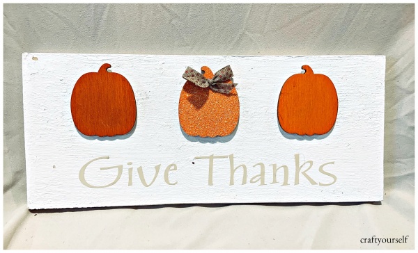 How did November get here already? I do love the fall season. However, this year has flown by. I was able to get all my Halloween decorations down over the weekend and worked on putting up a few things to celebrate Thanksgiving. Every year I notice how little decorations I have for Thanksgiving. I always think I will make or purchase more items but, I think the holiday comes so fast and then we are ready to get things going for Christmas. I love it when I can create something that comes together quickly. This Simple Give Thanks sign with Mini Pumpkins is perfect if you love a quick and easy craft project.