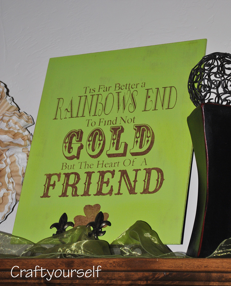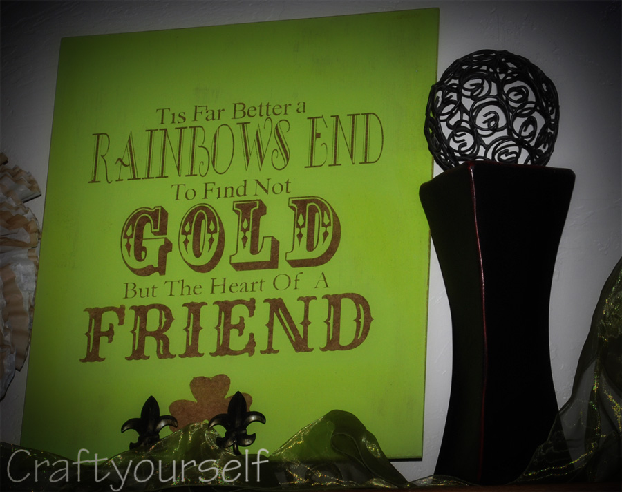 This project was done on a 12″x12″ 1/2″ particle board. Using the same green paint as what my outdoor bench was painted in. The particle board was left the same color of brown and the template was created using multiple fonts using the Silhouette.