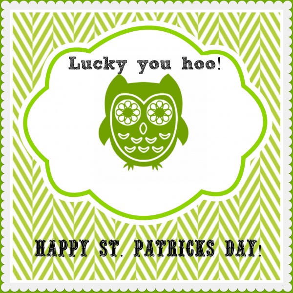 My second idea for the stand up bags you can be used for Valentines day or St. Patrick’s Day. I have an obsession with cute owls so when I looked at this bag I could see an owl in the shape. I folded the bag in half and trimmed out a half moon shape from the top of the bag to form ears for the owl. Next I used a variety of punches and scrap pieces of card stock and scrap booking paper that I had. I cut a rectangle measuring 2 1/2″ in by 6″ then folded it in half and trimmed the edges to make a half circle which will be used for the belly of your owl. Then I punched out 2 white 2″ circles for the background layer of the eyes. I also punched out 2 scalloped circles and 1 1/4″ circles that in layered on top of each other to make the eyes so there would be 3 layers total. I cut out a triangle that I glittered to use for the beak. Using the hot glue gun, first glue the belly on the bag, next glue the beak centered and overlapping the belly, then glue the eyes on. I also added a jewel for the pupil in the center of the eyes. Pop open your stand up bag and fill with desired treats and attach with free valentine prints or St. Patrick’s day prints.