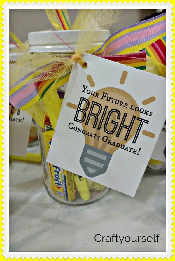 Graduation is right around the corner and I have a daughter graduating! Not only is she graduating but so are several of her friends. Being as busy as I am I needed a quick and easy idea to give to all these graduates! I originally saw this idea on Fun Squared blog and thought it was so creative so we came up with something similar! Here is how to make your own “Your Future Looks Bright” Graduation gift. Items you will need to make your own: Glass jar with a lid – if you are using an old pickle or jam jar make sure the label is scrubbed off and…