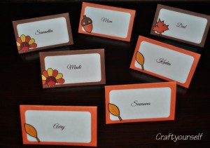 I am using these for my guests!!! The lovely blog Paper and Glitter was so Generous to have FREE thanksgiving printables that you could EDIT! She is my hero.. It is very hard to find free printables that you can edit! She has tons of ideas with these printables from a banner, to a menu list, to food tags, Cupcake toppers, I could go on and on. I used her food tags and made up name tags!