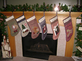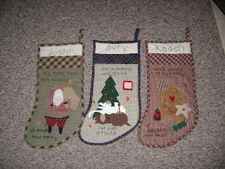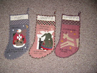 About 6 years ago my mom found a pattern book of some really cute stockings that she decided she wanted to make for Christmas. She started on her set & I being the wanna be that I am saw these stockings & decided they would be fun to make. I thought maybe they could even be easy enough to make as gifts! HA!
