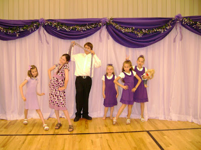 Can you tell her colors were purple?? The girls all had matching dresses that they wore that night at the reception.