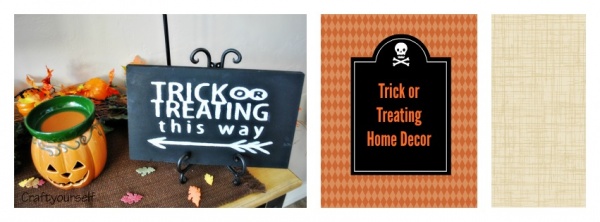 Trick or Treat!!! So, excited for this time of year and I can’t wait until those little kids come to my door all dressed up! For this project I used 3/4″ pine and cut it 12″ x 7″. I painted it with just a basic craft black paint. I used the silhouette to cut a template for the words and arrow. I saw this same craft at Landee See and wanted to re create it. Instead of using Vinyl for the wording like she did I used the Vinyl for a template and painted in the words. Sometimes you have to be careful for bleed through but I think overall it turned out super cute!