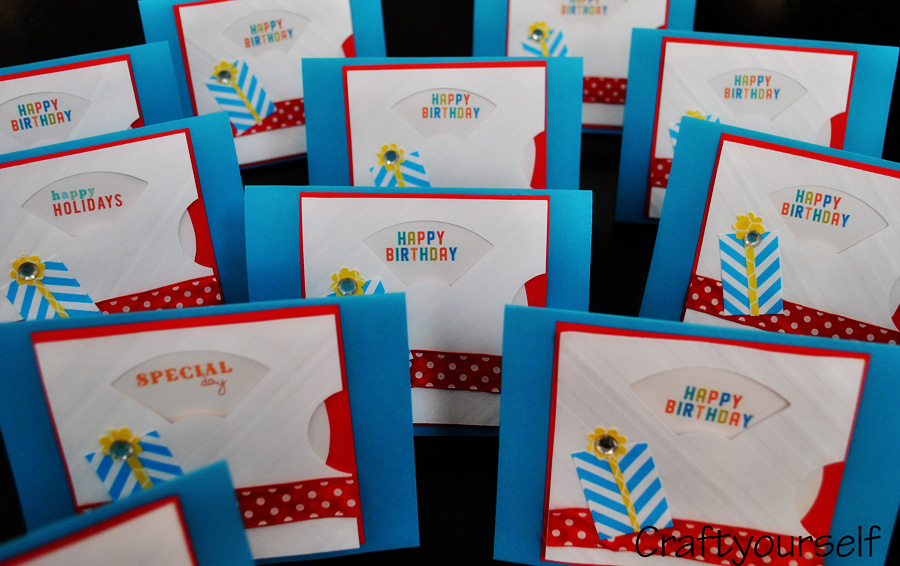 Here is a close up. The options as you turn the circle are Happy Birthday, Celebration, Happy Holidays and Special day. I love that one card can hit almost every occasion throughout the year! Love it!