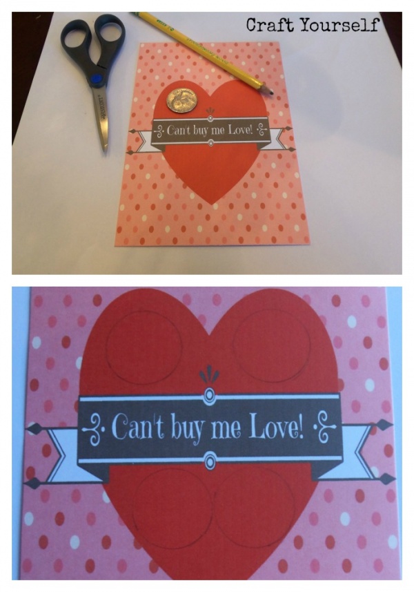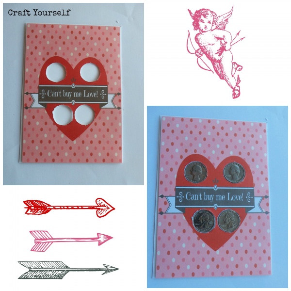 If you remember at Christmas time I made these Vintage Dime cards. They were such a hit with all the kids. I decided to make a Valentines version. This time I created a free printable and Chose not to use My handy silhouette machine. I know a lot of you at home don’t have a personal cutting machine. I Hand made this version, so that you can craft along with me at home. First print our free printable here on cardstock valentine money card with words valentine money card. There are 2 different options, plain like in my pictures, the other one says Happy Valentines Day! Each free printable has 2 cards per page