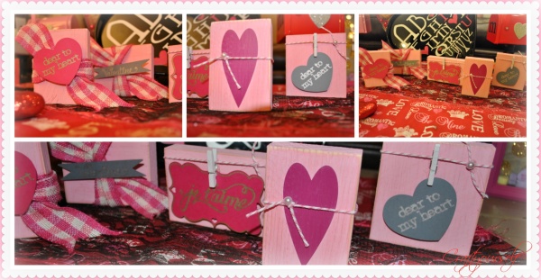 I’m always looking for a fast and simple gift for each holiday to give friends or neighbors. I whipped up these small blocks in just an hour. I painted them a light pink then once dry gave them a good sanding to sand off the edges.