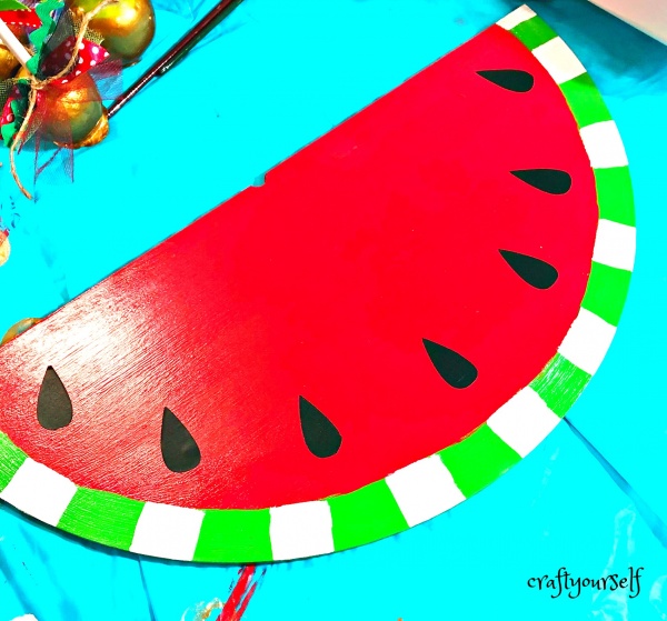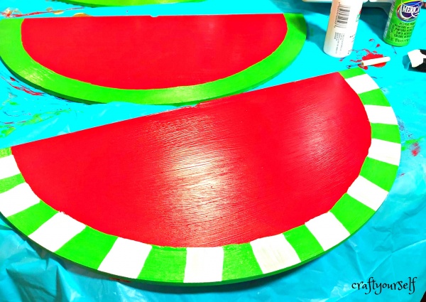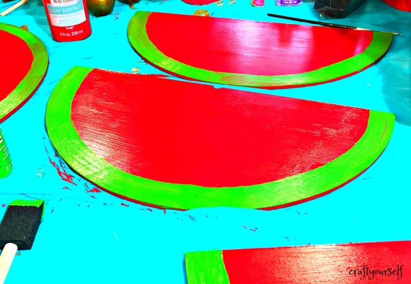 After your shape in dry, paint the 1″ outer edge of the watermelon green and let dry.