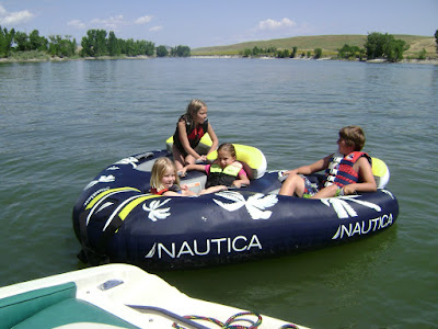 The kids getting ready for a ride on the tube of terror! Myself & my two sister in laws decided to take a ride on the tube with my brother in law Ben & my husband Justin pulling us behind the boat.. They never got us out of the tube but it came pretty close! I was sore for a week afterwards!