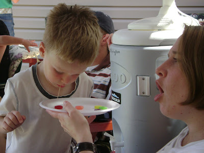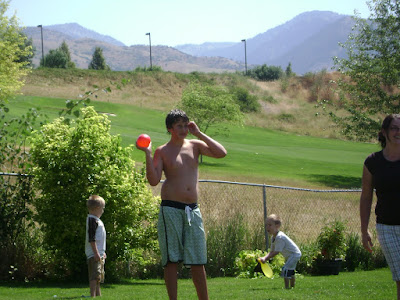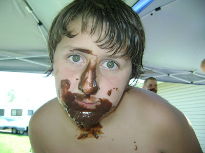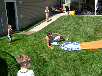 On Friday we played a lot of games. Dig out gummy worms out of pudding w/out using your hands, The lifesaver game, Water balloon toss, slip n slide. etc.