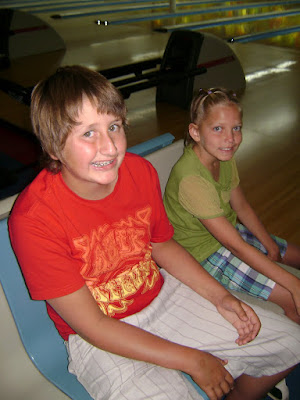 We went bowling & Friday night the adults stayed up and played night games. We played one that I had never played before but really enjoyed. It is called Fugitive. It is divided into two teams we had 5 on each team. We started out at an elementary school about 1 mile away from Justin’s parents house. The 5 people on foot had to try to make it back to Justin’s parents house without getting caught by the 5 people in 2 cars. I decided to be a runner with Justin, Kaden, Jon (Justin’s brother) and Jason (Our brother in law) Man it was a HARD game I swear sprinting then diving into bushes from every car that came along was a lot harder then I thought it would be. It was at night & I wore black but in the end I still got caught about a block or so from his parents house. Of course Justin made it the whole way! Between that and boating I was one sore girl! ๐