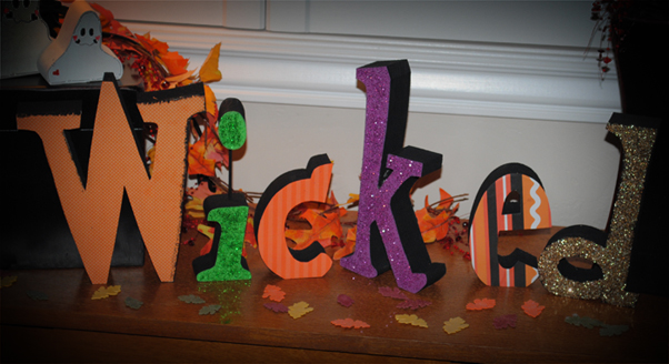 I picked up these wooden “wicked” blocks at The wood connection. A little paint, a little glitter, a little paper and you have a cute, easy Halloween craft!