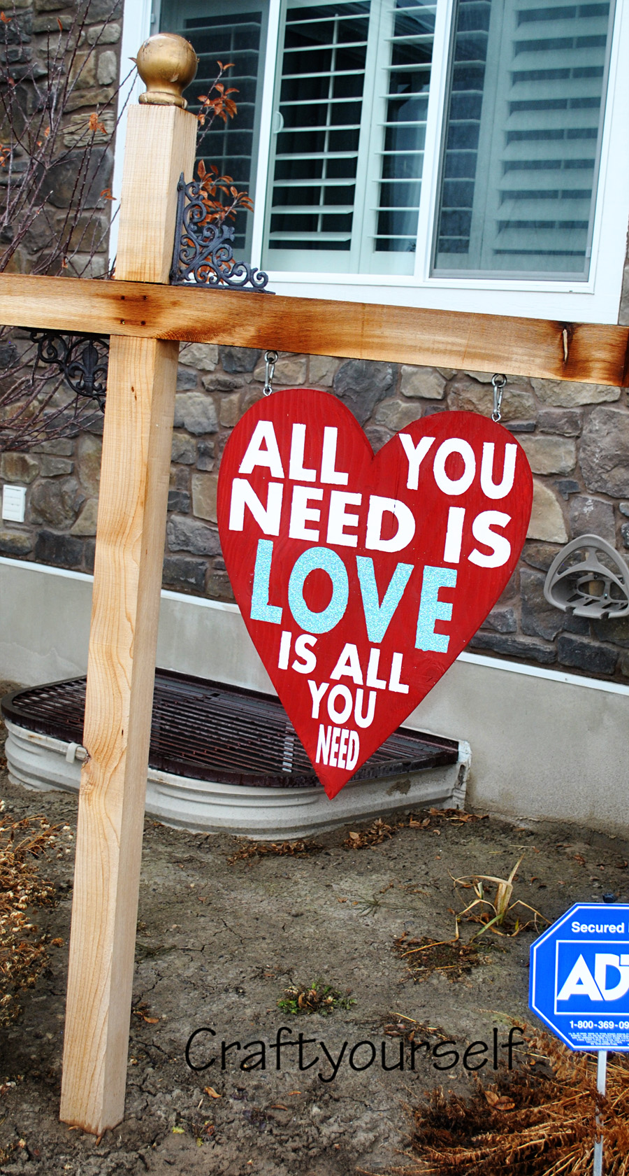 This month I did a Wood Heart for my big post outside. I am sad because there is absolutely no snow so, our yard just looks like a dead mess! At least a white blanket of snow would look beautiful next to this sign! It is a drab month so this pop of color really makes it fun! I love coming home and seeing this big Wood Heart in my front yard. Welcome to the month of LOVE.