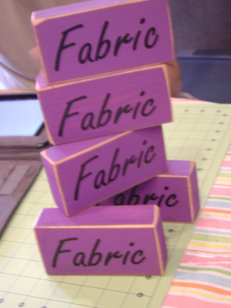 I made up a bunch of wood blocks for my mom’s Quilt guilt summer social. These can be made for any occasion in any size and you can use any lettering!