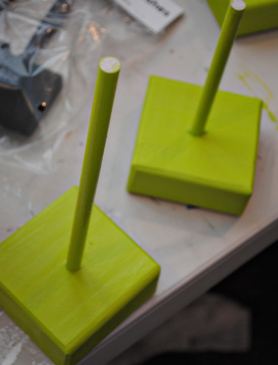 I had some left over stands that I had made to use with some wooden hearts in February for Valentines so, I took them and painted them a bright green.